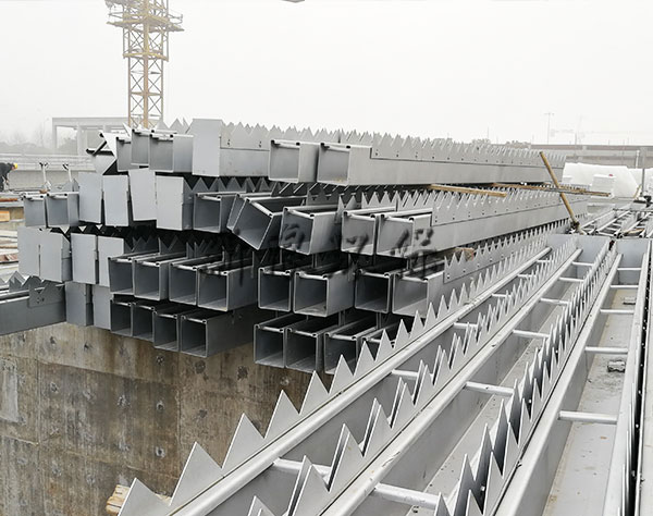 集水槽是用來均勻收集溢面清水的設備,主要用于沉淀池的出水端,常采用條形孔式或鋸齒式。斜管斜板沉淀池表面均勻布置集水槽、圓形澄清池采用環(huán)繞槽或配置輻射槽、污水廠終沉池采用圓形集水槽。